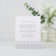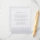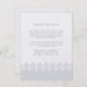 Projetado para coordenar com nossa coleção de convites para casamento árabes inspirada em marroquino, este simples e chic cartão de informações para convidados apresenta uma elegante cinza destacada com uma fronteira geométrica ao longo do fundo em cinzas de prata pálidas. Substitua o texto da amostra pelos detalhes chave da sua celebração do casamento. Recomendamos a impressão desse estilo no papel Luxe Pearl Shimmer para um acabamento metálico luminoso. Que informações incluir em um convite de casamento? Considere detalhes como acomodações de hotel, códigos de grupo, transporte, instruções, informações de recepção de boas-vindas e sua URL do site de casamento. Você pode até fazer upload de um mapa para o lado inverso usando a função personalizar. Precisa de ajuda com o texto ou a formatação? Eu adoraria ajudar! Entre em contato com Kristen através do link "pergunte a este designer".
