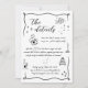 Abrace a fantasia e a elegância do nosso cartão de detalhes de casamento preto e branco único, divertido e informal, aninhado numa moldura ondulante cativante. Delícias desenhadas à mão adornam o cartão, incluindo copos de champanhe borbulhando de excitação, cartas de amor escritas com carinho terno, velas tremeluzentes iluminando o caminho para o sempre, e um carro de casamento vintage esperando para levar você numa jornada de amor. Cada pincelada captura a essência do romance e da celebração, prometendo uma união inesquecível de corações. Por favor, entre em contato conosco para assistência de design via Zazzle Chat. Teremos certeza de responder dentro de 12 horas.