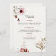 Aprecie seus convidados com o charme cativante do nosso Cartão de Detalhes de Casamento 'Burgundy Winter Elegance'. Esta elegante adição à nossa coleção de papelaria de casamento mostra os mesmos motivos florais encantadores em rico burgundy e puro branco, evocando o romance e a beleza do inverno. O Cartão Pormenores de Casamento 'Burgundy Winter Elegance' fornece informações essenciais para seus convidados, incluindo detalhes de recepção, opções de alojamento e outros detalhes importantes relacionados ao seu dia especial. Com tipografia clara e sofisticada, o cartão garante que todos os detalhes pertinentes sejam apresentados de forma saborosa e organizada. Inspirados pelos encantadores florais do tema do seu casamento, os delicados sotaques florais que enfeitam as bordas e o centro do cartão adicionam um toque artístico, harmonizando-se com o resto da sua suíte de papelaria de casamento. A design é um testemunho do cuidado e atenção que você colocou em todos os aspectos da sua celebração de casamento. À medida que seus convidados desvendam o Cartão Pormenores do Casamento 'Burgundy Winter Elegance', eles serão atraídos para o caloroso abraço de sua história de amor. O rico matiz burgundy e delicados motivos florais criam um ar de antecipação para a celebração mágica que aguarda. Encoraje seus hóspedes a acessar informações adicionais através do seu site de casamento, incluindo o link no cartão. Este gesto conveniente e pensativo facilita aos seus entes queridos que se mantenham informados e se imergam plenamente nas festividades alegres. Impresso em estoque de cartolina de alta qualidade, nossa Carta Pormenores do Casamento 'Burgundy Winter Elegance' exude elegância e sofisticação, definindo o tom para a bela celebração do casamento que você planejou. Preencha sua suíte de papelaria de casamento com esta adição encantadora, garantindo que seus hóspedes tenham todas as informações necessárias na ponta dos dedos enquanto capturam seus corações com a beleza do seu casamento no inverno. Ordene seus Cartões Pormenores de Casamento 'Burgundy Winter Elegance' personalizados e dê aos seus convidados uma olhada nos momentos mágicos que os aguardam.