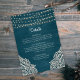 Adicione um toque de charme boêmico aos seus convites de casamento com esta carta de detalhes de casamento russa e brilhante de Teal Russo Escuro. O fundo negro de madeira preta estabelece a palco de uma celebração mágica, adornada com luzes brilhantes que criam uma atmosfera romântica. Os deliciosos padrões florais brancos enquadram os cantos do convite, acrescentando um toque elegante e feminino. A combinação de um tipo de letra de escrita vintage com um tipo de letra serif legível em branco cria um belo contraste em relação ao fundo escuro, assegurando que todos os detalhes sejam facilmente legíveis. Este convite é perfeito para casais que buscam um tema de casamento único e encantador. Ponha o tom para o seu dia especial com os nossos convites de Elegance Russo que deixarão uma impressão duradoura nos seus convidados.