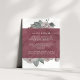 Projetado para coordenar com a nossa coleção floral de casamentos do Jardim Inglês em Marsala. Rico e elegante em tons mudos de rosa-pincel e burgundy-luxo, nosso cartão de visita ao Jardim Inglês apresenta um fundo de flores de pénia cor-de-água rosa e verde com uma camada de marsala. Substitua o texto da amostra pelos detalhes chave da sua celebração do casamento. Que informações incluir em um convite de casamento? Considere detalhes como acomodações de hotel, códigos de grupo, transporte, instruções, informações de recepção de boas-vindas e sua URL do site de casamento. Você pode até fazer upload de um mapa para o lado inverso usando a função Personalizar.