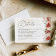 O "Cartão Pormenores de Casamento Pinecone Vermelho Inverno" é a escolha ideal para um casamento no inverno, misturando perfeitamente o vermelho quente das flores, a folhagem verde fresca e os sotaques de pinecone. Com sua elegante design, este cartão não só informa os convidados sobre a recepção, como também cria uma atmosfera confortável e sofisticada para o seu dia especial. É uma parte essencial da sua papelaria de casamento, permitindo que os hóspedes sintam o pensamento e o cuidado que dedicou à celebração da sua ocasião importantíssima.