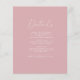Este cartão de recepção mínimo é perfeito para um casamento elegante. O design apresenta um estilo minimalista simples. Personalize este cartão de recinto detalhado com as informações de recepção e inclua também o endereço do seu site de casamento! O PAPEL ORÇAMENTAL É FINO! ***ATUALIZAR PARA UM PAPEL MAIS ESPESADO. SEM ENVELOPES INCLUÍDOS.*** PARA CARTÃO STOCK, OU CARTÕES ESPESSURAS, clique neste link >> https://www.zazzle.com/z/aygflpoh?rf=238187168869594910 Ou transfira seu design para um cartão de resposta.