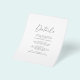 Este cartão de recepção mínimo é perfeito para um casamento elegante. O design apresenta um estilo minimalista simples. Personalize este cartão de recinto detalhado com as informações de recepção e inclua também o endereço do seu site de casamento! O PAPEL ORÇAMENTAL É FINO! ***ATUALIZAR PARA UM PAPEL MAIS ESPESADO. SEM ENVELOPES INCLUÍDOS.*** PARA CARTÃO STOCK, OU CARTÕES ESPESSURAS, clique neste link >> https://www.zazzle.com/z/aygflpoh?rf=238187168869594910 Ou transfira seu design para um cartão de resposta.