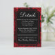 Uma carta de detalhes é o toque final perfeito para seus convites de casamento gótico ou rosa para dar o tom de um casamento elegante. Esta placa de gabinete apresenta rosas vermelhas crimson contra um fundo preto intenso. Esse cartão de detalhes permite que seus convidados saibam onde tudo ocorrerá e como reservar reservas. Então envie Cartões de Detalhes do Rosa Gótico junto com seu convite e se prepare para um casamento inesquecível! Também disponível em estilo horizontal na minha loja.