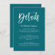 Um cartão de detalhes de casamento do estilo Teal Blue e branco com frente e fundos para adicionar tantos detalhes quanto precisar para seu convidado de casamento.