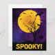 Um cartão de Dia das Bruxas ousado, com lua de colheita brilhante, morcegos voadores e uma silhueta assustadora, com um jack-o-lanterno. Perfeito para quem ama o clássico Halloween vibe com um toque de mistério gótico. Personalize facilmente a parte traseira da placa com apenas alguns cliques.