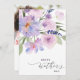 Um design floral de aquarela com flores roxas lavandas e guião. O texto e as cores podem ser personalizados.