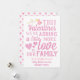 O cartão de Dia de os namorados do anúncio de gravidez feminina personalizado com um gênero revela para surpreender sua família e amigos e avisá-los quando seu bebê nascer. Design em cor rosa e branca com coração.