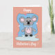 Um simples e fofo cartão de saudação de Dia de os namorados para crianças com uma doce cinza de cartoon koala e alguns corações cor-de-rosa espalhados aleatoriamente por aí. © ArianeC Ilustrações — Todos os direitos reservados