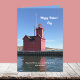 Esta incrível fotografia de um farol vermelho apresenta "Big Red" na Holanda Michigan. As palavras "Dia de os pais Feliz" aparecem no céu. Na água estão as palavras: "Que te possa Deus abençoe no Dia de os pais e sempre." Dentro é um verso adorável sobre a orientação do seu pai na sua vida. Este é um belo cartão de Dia de os pais cristão. Copyright Kathy Henis