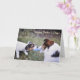Jack Russell terrier e filhote puxando um cartão de Dia de os pais de ossos de um brinquedo de borracha