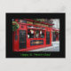 Cartão postal para a Rua. Dia de Patrick do famoso pub vermelho com as cestas de flores penduradas no bairro de Temple Bar, em Dublin, a capital da Irlanda com uma fronteira negra e o texto "Ruas felizes. Dia de Patrick!"