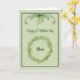 O cartão do Patrick para a mãe com um design verde bonito num fundo verde claro. A mãe está cercada por uma coroa verde. Obrigados à Hungryjpeg para alguns dos elementos do design.