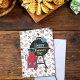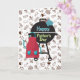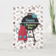 Celebrar a grandeza de Pai com esta divertida e festiva carta do Dia do Pai! Uma grelhadora preta corajosa senta-se à frente e ao centro, rodeada por um padrão lúdico de carnes, pizza, caneca de cerveja e cachorros quentes. Apresentando um avental vermelho e uma luva azul, esta placa é vazio de dentro — perfeita para sua mensagem pessoal para o CHURRASCO do quintal.