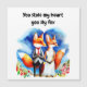 Cartão de dia dos namorados da raposa apresenta casal de noivos raposas apaixonados com a frase Você roubou meu coração, sua raposa astuta