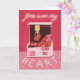 Este é um cartão de Dia dos Namorados retrô divertido com uma máquina de garra e carpete de arcade para o amante de jogos na sua vida. Parte de “You won my heart” é escrita à mão com destaques em neon. O cartão é desenhado com muitas texturas ásperas para dar um visual vintage. O interior do cartão pode ser personalizado.