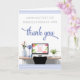 Este é um Cartões de agradecimentos do Dia dos Profissionais Administrativos em branco e azul. O cartão apresenta uma mesa, uma cadeira de escritório e uma tela de computador. Na mesa estão alguns acessórios decorativos, azuis e brancos, rosas cor-de-rosa e um vaso riscado azul e branco e algumas pétalas soltas por baixo e uma planta verde folheada. Na tela do computador está um poster que diz 'Profissionais Administrativos fazem do mundo um lugar melhor' em um texto cor-de-rosa e laranja, colocado sobre um fundo branco. Nas bordas do poster estão bonito flores cor-de-rosa e laranja e folhas verdes. No espaço acima da secretária e da tela do computador está o texto: 'DIA DOS PROFISSIONAIS ADMINISTRATIVOS' escrito numa cinza, em caracteres simples e abaixo, que está escrito: 'obrigado você', escrito em caracteres azuis com rotinas decorativas. © Natalie Kinnear Cards Pode ver toda a minha seleção de cartões de saudação em: www.greetingcarduniverse.com/nataliekinnearcards