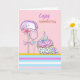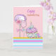 Cartão de Dia Mais Doce com doces de cor pastel, listras e pop de cor amarela. O fundo é cor-de-rosa com listras coloridas na parte inferior. Obrigados à Hungryjpeg para alguns dos elementos do design.