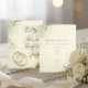 Celebre o amor e a fé com este elegante cartão de duaa de casamento islâmico, apresentando caligrafia árabe, delicadas flores brancas e anéis de casamento dourados. Um design atemporal que combina lindamente tradição e estilo moderno. Perfeito para cerimônias de Nikah, casamentos muçulmanos e bênçãos sinceras para os recém-casados. Personalize para um souvenir único.