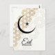 Cartão Eid Mubarak projetado com lua de Eid marrom e ornamentos islâmicos Você pode personalizar este cartão com votos de Eid e enviá-lo a quem você ama.