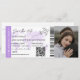 Bilhete de casamento de passagem de embarque com monograma minimalista moderno com um fundo branco e marrom simples, uma foto do casal noivo, um avião com uma trilha em loop e um modelo de data de salvamento facilmente personalizável. Não se esqueça de alterar o texto na parte de trás do monograma.
