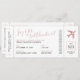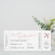 Convite de cartão de embarque de destino em tons Rosa Dourado Blush Rosa, cinza e preto e branco para um chá de panela com tema de viagem ou celebração de casamento para uma noiva. Um design retro moderno, simples e minimalista parece autêntico, incluindo um código de barras e atribuição de assento, com espaço para informações de sorteio de jogos de festa nupcial e detalhes de registro impressos no verso.