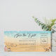Deixe que o amor de vocês um pelo outro faça uma viagem para toda a vida e comece a celebração com este lindo bilhete de viagem de "salve a data" tropical! Perfeito para o casal que ama a praia, este deslumbrante design apresenta um fundo rústico ombre amarelo para azul aquarela, decorações de estrelas-do-mar e conchas, e belas luzes de corda - tudo criando o cenário perfeito ao ar livre para os dois corações na areia com suas iniciais e data do casamento. Personalizável com apenas alguns cliques, nunca foi tão fácil criar o "salve a data" perfeito para o casamento dos seus sonhos em um destino de praia.