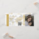 Um bilhete de casamento com cartão de embarque em monograma dourado, uma foto do casal de noivos, um avião com uma trilha circular e um modelo fácil de salvar a data personalizável estão incluídos. Lembre-se de manter o texto no verso do monograma atualizado.