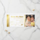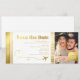 Cartão de embarque moderno falso dourado para casamento com um simples fundo branco que pode ser alterado para qualquer cor, uma foto do casal, um avião com um rastro em forma de coração e um modelo personalizado de salvar a data que é fácil de personalizar. Observação: Este produto não apresenta folha de ouro real. É um gráfico feito para parecer folha de ouro.
