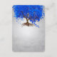 Casamento de Conto de Fadas Mágico e Caprichoso. Árvore de Folhas Azuis Reais em Papel Metálico com Tom de Prata Quente Manchado a Chá com uma Sobreposição de Partitura Antiga e alguns desenhos espiralados fofos para realçar as raízes do amor neste Cartão de Enclausuramento de Casamento Florestal Único