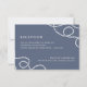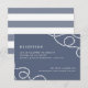 Elegante cartão de enclausuramento de recepção de casamento com tema costeiro apresenta os detalhes da sua recepção em um fundo azul-cinza ardósia, acentuado nos cantos com laços de corda náutica trançada. Os cartões são impressos no verso com largas listras náuticas.
