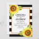 Este convite para o casamento de girassol apresenta girassóis de cor d'água em fundo listrado.