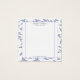 Uma placa de vídeo elegante com marcadores laterais para colocação personalizável. Estilo clássico de vintage francês com design floral azul empoeirado em combinação com fundo branco limpo, perfeito para mostrar suas pulseiras com um aspecto polido e profissional. Esta placa não vem com nenhum orifício ou barra predefinidos. Os cortes são simulados e servem de guia para usar tesouras ou cortadores.