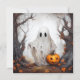 cartão de fantasma de halloween...FELIZ HALLOWEEN no verso do cartão