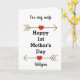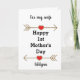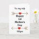 Um cartão feliz do 1º Dia das Mães para a esposa, que você pode personalizar facilmente com o nome dela. Características setas cintilantes com corações. Dentro deste cartão do 1º Dia das Mães lê-se uma mensagem sincera, que você também pode alterar facilmente. A parte de trás deste cartão moderno do primeiro Dia das Mães apresenta a mesma seta e corações onde você pode personalizar o ano.