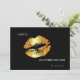 Cartão de convite para a véspera de Ano Novo com fundo preto e lábios falsos e o texto: "Quero beijar-te um feliz ano novo!" O cartão é completamente personalizável.