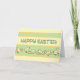 Cartão de saudação de felz pascoa com adoráveis ilustrações de galinha bebê e ovo de Páscoa em amarelo pastel, laranja e verde. Deseje aos seus amigos e família bem com este charmoso cartão de felz pascoa.