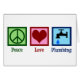 Cartão de férias para uma empresa de canalizador que apresenta um legal sinal de paz, coração e uma torneira de água a gotejar.