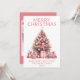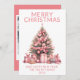 Árvore de Natal rosa fotográfica para o cartão de Natal em azul para um Cartões de natal festivo para familiares e amigos.