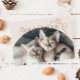 Cartão de modelo de foto de gato de Natal bonito com um texto engraçado que diz "Feliz Natal". Adicione suas fotos de gato neste cartão de quadro de arco bege. Há uma ilustração de um arco.