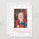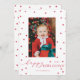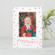 Este cartão com fotos de feriado personalizável apresenta uma borda de pompoms de estrelas vermelhas e uma saudação de feriados felizes em chic em torno de uma foto de solteiro para uma sensação de luxo e escala.
