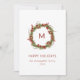 Um cartão de festas da família de natal minimalista. Este cartão de natal apresenta uma coroa verde com pinhos cones e bagas e uma inicial no meio da coroa. Todo o texto no cartão pode ser personalizado. A foto é apenas para fins de posicionamento e pode ser substituída por qualquer foto.