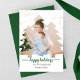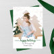 Este Cartão de Feriado de Férias de Corte de Árvore de Natal, de Anton Design Co, apresenta uma bela foto de você e sua família atrás de um recorte de três árvores de Natal escovadas e coloridas com água.