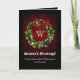 Cartão de Feriado de Holly Wreath Clássico Monogra