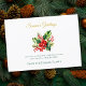 A Watercolor Christmas Holly Holiday Card (Cartão de Natal de Watercolor) é um design bem trabalhado que captura o charme eterno da estação através de delicados trabalho de arte botânicos e de filmes de férias naturais. Este cartão combina a elegância do design inspirado na safra com o toque suave e artístico da pintura a aquarela, fazer-o como uma escolha perfeita para aqueles que adoram os detalhes clássicos do Natal apresentados de forma refinada e moderna. No centro da design estão ilustrações graciosas de folhas sagradas e de bagas sagradas vermelhas, muitas vezes acompanhadas por prigos de espadilha, pinecones e verde sazonal. Estes elementos são pintados com braçadeiras de aquarela macia, dando-lhes uma qualidade fresca, pintada à mão, que se sente orgânica e sentida. A utilização de verdes ricos de sagras e espúcias aliados aos vermelhos vibrantes das bagas cria uma paleta festiva, mas natural, que imediatamente evoca o espírito do Natal. A composição é, muitas vezes, minimalista e simples, com bastante espaço aberto em branco que permite destacar as ilustrações botânicas detalhadas. Algumas versões podem incorporar sutis lavagens aquáticas em tons silenciados para adicionar profundidade e calor, enquanto outras mantêm o fundo limpo para uma sensação de cartão de feriado minimalista mais moderna. A tipografia é tipicamente subestimada e elegante, muitas vezes apresentando uma saudação clássica de "Feliz Natal" em scripts ou fontes serif que se harmonizam com as ilustrações de aquarela. A colocação do texto é cuidadosamente equilibrada, de modo que o foco permanece na beleza natural dos elementos sagrados, bagas e pinheiros. Este cartão natalino de aquarela apela a quem valoriza a beleza da natureza, a nostalgia dos botânicos de férias antigos e a sofisticação pura da design minimalista. A combinação de espiral de baga oca-cola, sotaques de pinecone e detalhes de aquarela pintados manualmente cria uma estética quente e eterno que parece tradicional e refrescante, fazer que seja um cartões de natal ideal para enviar para a família, amigos ou colegas.