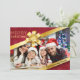 Cartão de Feriado Plana de Foto com Ouro Red Snowflake Arco