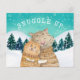 Gatos Bonitos Abrindo A Placa De Feriado De Neve. Um preço orçamentário Cartão simples MAIS PEQUENO de 4,5" x 5,6" para as suas saudações festivas em um estoque de cartão SEMI GLOSS 110 lb brilhante (semelhante à espessura de um cartão postal). OBSERVE: O envelope fornecido com este cartão é ligeiramente maior que o próprio cartão. Uma encantadora cena festiva com um sentimento aconchegante para enviar seus entes queridos nesta temporada de festas, com esta ilustração aquosa de lindos gatos abraçando-se vestindo suéteres de Natal, com árvores cobertas de neve para trás. Curva acima está a tipografia Snuggle Up. Todo o texto na frente e atrás pode ser facilmente personalizado com seus nomes e saudações.