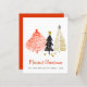 Cartão legal de férias com abstrato de ilustrações modernas de árvores de Natal vermelhas, douradas e pretas. Personalize sua saudação (inicialmente definida como "Feliz Natal") e seu nome e ano.
