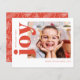 Trata-se de um orçamento, um cartão de férias vermelho e branco, brilhante e simples, moderno, em uma folha de papel. O design apresenta uma foto minimalista de solteiro combinada com "alegria" em uma fonte serif, ousada e clássica. Altere facilmente a foto, mude a família e adicione uma mensagem usando as opções de modelo fornecidas. Entre em contato com o designer para fazer perguntas ou problemas relacionados a este design ou a produtos correspondentes.